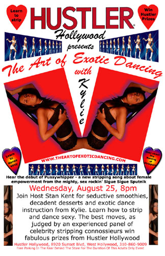 This is where the Art Of Exotic Dancing night photos will go - but for now here's the poster ... and as an extra special bonus besides learning how to dance sexy and strip - you'll listen and groove to Pussywhipper - the brand new track about female empowerment from legendary sex rockin' Sigue Sigue Sputnik courtesy of Neal X. It's the first time it's been heard in public and the band wants your feedback. From the title you can guess what it's about and when you hear it you'll want to get up and ... exotic dance.
